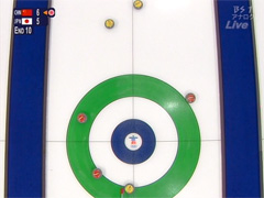 第3戦、これまた強豪の中国だが、しかし現在同じ1勝1敗同士、ぜひとも撃破して弾みをつけたいところであったが… 序盤から終止微差でリードされ続け、5-6でしかも先攻という苦しい局面で迎えた最終エンド、なんとかスティールを決めようと放った日本の黄色い石が、中心から大きく外れてしまう大ピンチ… そして中国の最後の石でこれをはじき出されてしまい、負け…これで1勝2敗か…決勝トーナメント進出が早くも厳しくなってきたか……