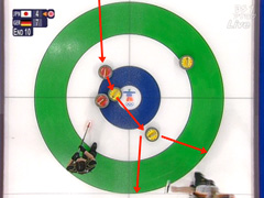 そして次、ドイツ戦だが…2点先制されると更に1点スティールされ、その後は、序盤から石を溜めて大量点を狙う作戦を取るも、なかなか追い付けない展開に…