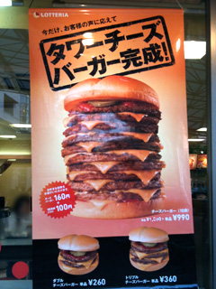 タワーチーズバーガー、非常に興味深いのだが、公式に取り扱い店舗を発表していないのが残念…と思っていたら、南越谷駅前のロッテリアで扱っているという話を聞き、さっそく行ってきた!