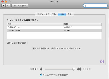 …但し、HDMIで繋ぐと、Mac側で音量を変更する事は出来なくなるようだ。