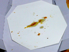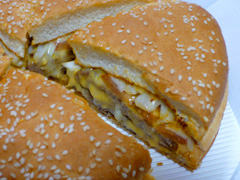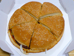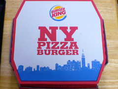 バーガーキングのNYピザバーガー、もう発売開始されているのに今頃気付いた。 …ということで、バーガーキングからの挑戦状を受け取ってきた。 で…開けてみたが…確かに、とてもハンバーガーの範疇に入らないくらいでかい。 さっそく頂いたが…味はおおむね普通にバーガーキングのハンバーガーだった。 しかし…ミートパティが6枚入っているとは言え、分量的にはワッパー3個分くらいという感覚だった。 でかい事はでかいが、ふつうの成人男性だったら問題なく完食できる量な気はする。