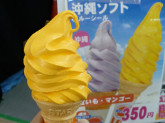 沖縄といえばブルーシールという、現地では有名なアイス。マンゴー味を買ってみた。
