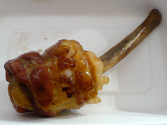 薄切り肉を骨に巻いて焼き上げたモノ。