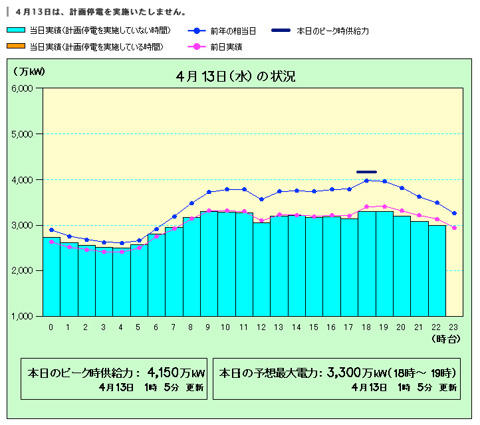 …今は去年の水準で電気使っても電力不足にならない状況になっているんだから、暖房も冷房も使わなくて済む今のうちこそ電気ばんばん使って産業の萎縮を食い止めないといけないだろ。