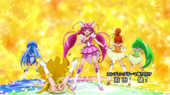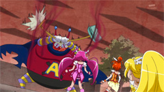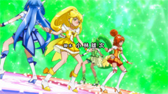 キュアイヤボーンつええ。 んで、エンディング、毎回微妙に変えているんだな。 その週に新規にプリキュアになったキャラだけ動かし方ちがうということか。 …てか、今回だけイヤボーンが鼻の頭赤くしてるとか、芸が細かいな。