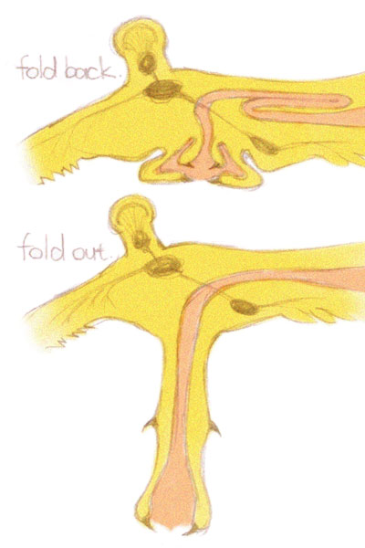 2年以上前ですが、ナショナルジオグラフィックに「アノマロカリスの口のコンピューターモデルでは、現生のエビの柔らかい殻すら噛み砕くことができないことが示された。」「それどころか、口を完全に閉めることさえできなかったらしいという。」というニュースが載ってて、そのときは「ふーん?」だったのですが、このところどうも奴が節足動物だったとは思えなくなってきてですね…その流れで、お口周りが特に気になって調べたら、ウィキペからのリンクにカンブリア爆発国際学会での口頭発表の記録を発見。残念ながら”口のコンピューターモデル”の図は無かったものの、「These (modellings) include sphincter-like constricting closure of the circlet of plates, and full- or half-eversion or inversion of the circlet; the latter two movements generate sufficient subambient pressure for suction feeding. 」とあり、悩んだΔさんが「んん?…ゴカイとかでよくある収納式の吻では?」と思いついて描いたのがコレ↑。