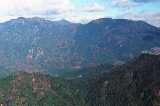 倒木の中一旦下った鞍部からはまずまずの急登を登る。このあたりは障害物も少なくなり、登りは厳しいが、先ほどの下りよりよほど歩きやすい。登り切ると、植林帯を緩やかにアップダウンして三角点のある東峰に到着する。ここは展望は良くなく、そのまま西峰に向かう。痩せた尾根を木に掴まりながら歩いて登っていけば狭いが雄大な展望の広がる山頂に到着した。