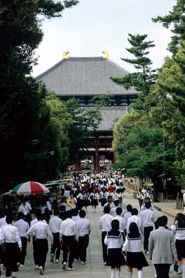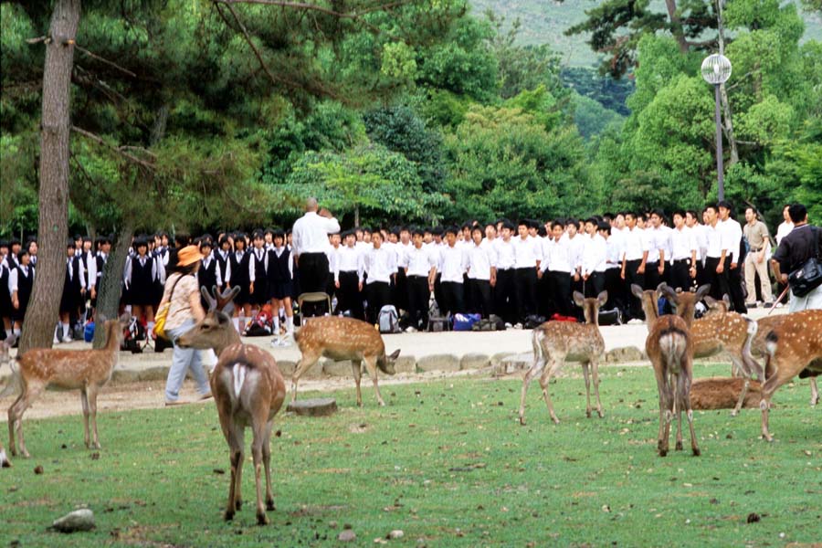 良。修学旅行の生徒でいっぱい。私も中学の時に修学旅行で来ました。そのとき以来、15年ぶりくらいの奈良です。