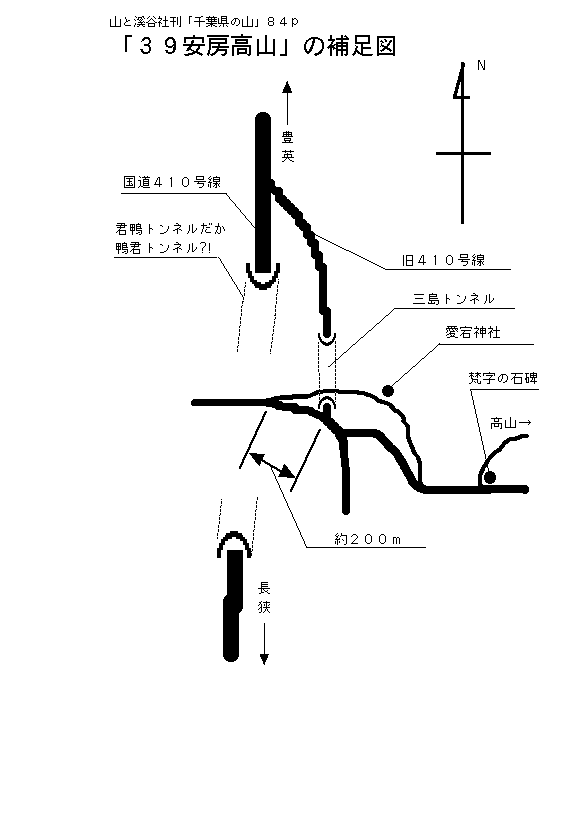 ところで、山と溪谷社刊「千葉の山」の安房高山の案内図がかなり現況と異なっていましたので地図を作りました。