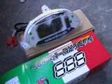 箱から取り出した状態。ノーマルと同じ形で、精度も良い感じ。中にはメーター本体と、スイッチボックス、タコメータのパルス取り出し用のケーブルが入ってます。