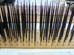 塗ったお箸を立てる台、こんな道具も自分で工夫します。これは1枚に約20膳立てられる計算。