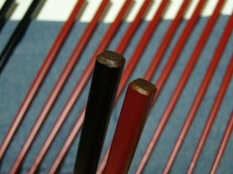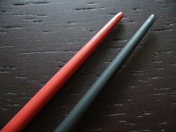 先端のすべり止め加工をする部分だけ研ぎます。研ぐことで表面が粗くなり、次の漆がしっかりと喰いつきます。